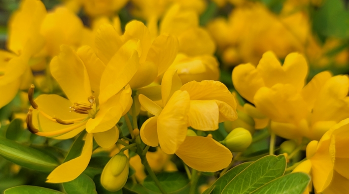 スパイスの王様、シナモンであるカッシアは満開の時期に黄金色の花を咲かせます。